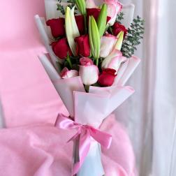 Price: $89.95Dozen Red Roses w/ lilies